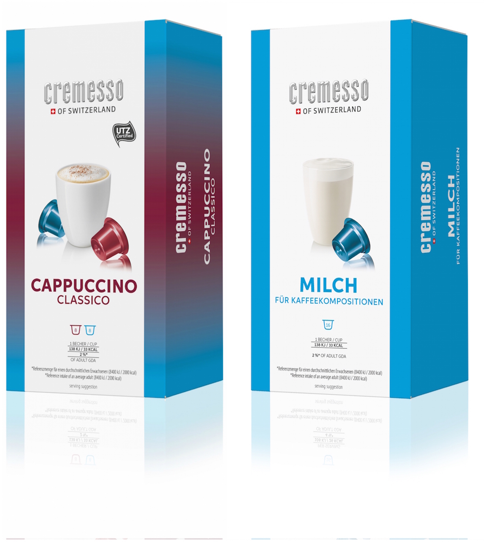 Mit der neuen Cremesso Milchkapsel zaubern Verbraucher in Kombination mit dem Espresso Classico einen kräftigen Cappuccino. Das blumige Aroma des Espressos kombiniert mit der schaumigen Milchkrone sorgt für ein vollkommenes Cappuccino-Erlebnis, das keine Wünsche offen lässt. Die Kombination aus Milchkapsel und Espresso Classico ist als Convenience Package ab dem 2. Mai 2016 in einer Packung zum Preis von 3,99 Euro (UVP) exklusiv bei Netto Marken-Discount erhältlich. Ein Package enthält 16 Kapseln (8 Milchkapseln und 8 Espresso Kapseln) und ist somit für die Zubereitung von acht Cappuccinos geeignet.