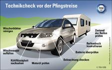 Reifenschäden, Motorkühlung, Elektrik/Elektronik ? das sind die Top-Drei bei den Urlaubsfahrzeugen in der Pannenstatistik. Kein Wunder, denn was im kleinen Pendelverkehr nicht zum Ausbruch kommt, zeigt sich im Langstreckentest auf Urlaubstour. Hohes Autobahntempo und infolge dessen höhere Materialbelastung zehren an der Technik. Ein rechtzeitiger Check ist daher auf jeden Fall eine gute Idee. Eberhard Lang von TÜV SÜD: ?Wer sein Fahrzeug turnusgemäß in der Werkstatt durchschauen lässt, kommt nicht nur sicher an, sondern tut zusätzlich was für den Werterhalt.? Zur Vorbereitung auf die Ferientour auf jeden Fall Flüssigkeiten, Reifen, den Luftdruck und die Beleuchtung kontrollieren.