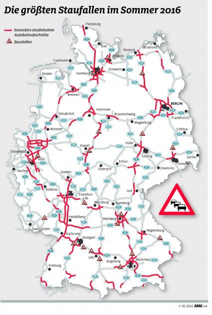 "Am langen Wochenende drohen zahlreiche Staus / ADAC-Stauprognose für das Wochenende 25. bis 29. Mai (FOTO)