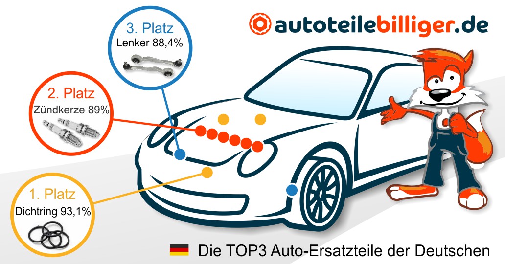 (IINews) - autoteilebilliger.de (https://www.autoteilebilliger.de/) hat aus etwa 16.000 Kundenbewertungen der letzten zehn Jahre das Auto-Ersatzteil mit den besten Bewertungen in Deutschland ermittelt: Es ist der Dichtring mit satten 93,1% Zufriedenheit. Auf den Plätzen zwei und drei folgen Zündkerze (89%) und Lenker (88,4%). Beim Blick in andere Länder gibt es andere Spitzenreiter: In UK führt die Zündkerze mit 89,9% das Feld an, vor Sensor (87,6%) und der Schlauchleitung (86,4%). Bei den Nachbarn aus Frankreich rangieren ebenfalls Zündkerze (90,3%) und Sensor (87,7%) auf den vorderen Rängen, gefolgt von Sensor mit 86,9%. Und in Bella Italia belegen Zündkerze und Sensor die ersten beiden Plätze (89,9% und 87,6%), auf Platz drei liegt die Schlauchleitung (86,7%).