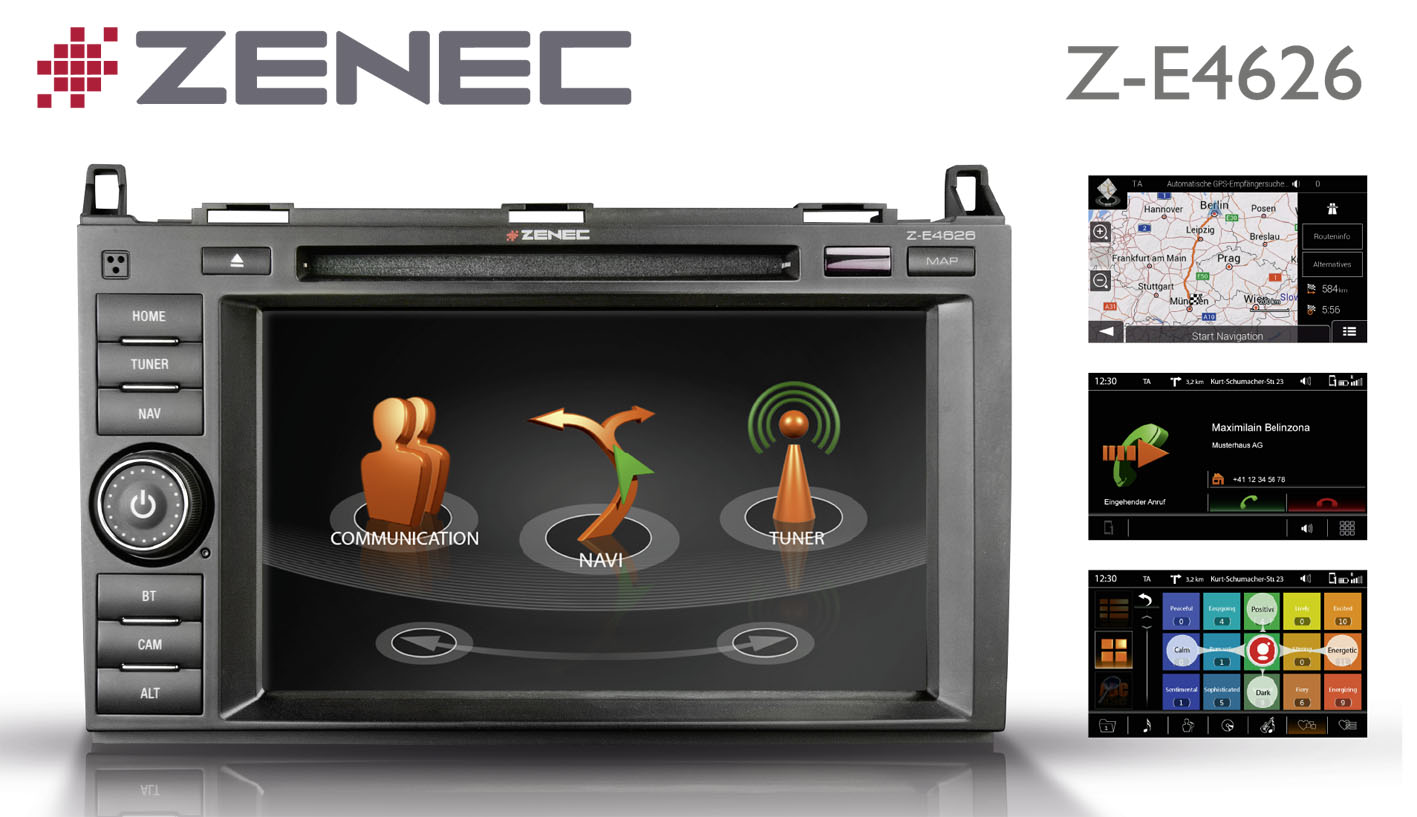Navigation und Multimedia im Fahrzeug, dafür steht die Marke Zenec, im deutschsprachigen Raum der Marktführer für In Car Multimedia. Von Festeinbaunavigationen und Multimediasystemen bis zu ergänzendem Zubehör wie Rückfahrkameras, Monitoren oder DVB-T Tunern - die Zenec Produktpalette bietet überzeugende Komplettlösungen für jedes Auto.
