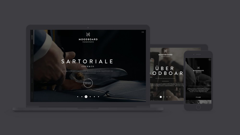 Dunckelfelds Kunde Moodboard ist ein Spezialist für ästhetische Bewegtbildproduktionen und die Inszenierung echter Handwerkskunst. Bei Konzept und Design der Website konzentrierte sich die Agentur deshalb darauf, die hohe Qualität der Filme 1:1 im Medium Online erlebbar zu machen. Eine besondere Herausforderung lag dabei in der Kombination des außergewöhnlichen visuellen Auftritts mit einem gängigen Content Management System. Mit dem Responsive Webdesign in Wordpress fand Dunckelfeld dafür eine glanzvolle Lösung.
