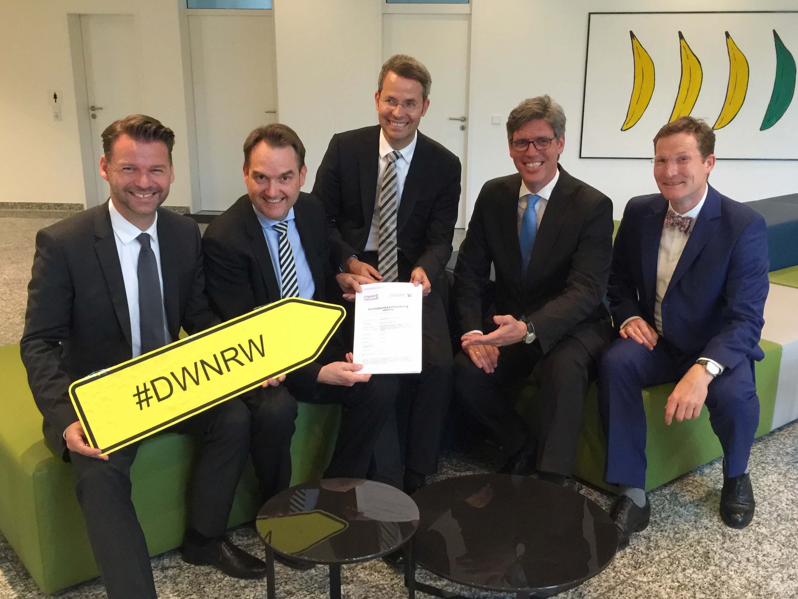 Mit dem digitalHUB, einem regionalen Digitalisierungszentrum, bewirbt sich die Initiative jetzt auf die öffentliche Ausschreibung des Landes NRW zu den "Digitale Wirtschaft NRW - Hubs". Hier sollen bis zu fünf Regionen in NRW als Leuchttürme für Digitalisierung ausgelobt werden, die Kooperationen bei der Zusammenarbeit von digitalen Startups, Mittelstand und Industrie fördern. Dabei ist entscheidend, dass die Regionen selbst ein Eigenkapital von 1,5 Millionen Euro aufbringen. Den Betrieb des Hubs unterstützt das Land NRW dann durch Aufstockung der Mittel auf insgesamt 3 Millionen Euro durch Fördermittel.