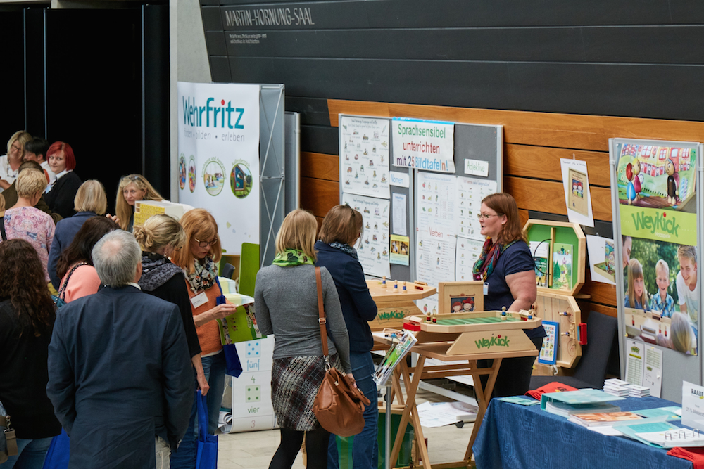 Viele Anregungen für Sprachförderkräfte bot die begleitende Messe mit u.a. pädagogischen Spielsachen, kindgerechten Sprachlernmittel, Büchern, Noten und Musikbüchern - die Auswahl der gezeigten Produkten und Dienstleistungen war groß.