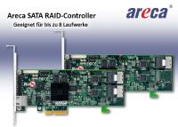 Die Areca ARC-1203 RAID-Controller bieten die Möglichkeit kostengünstig bis zu acht 6 Gbit/s SATA HDDs oder SSDs in einem Computergehäuse anzuschließen und zu betreiben