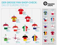 (PresseBox) - Die Fußball-Europameisterschaft startet heute. Die letzten Fans rüsten sich mit einem Trikot ihrer EM-Helden. Die meisten Fußballverbände bieten Fan-Artikel im eigenen Online-Shop an. Trusted Shops hat die Shops der EM-Teilnehmer unter die Lupe genommen. Das ernüchternde Ergebnis aus deutscher Sicht: Für den DFB-Fanshop ist schon "im Achtelfinale" Schluß. Deutschland landet im Shop-Vergleich auf Platz 10.