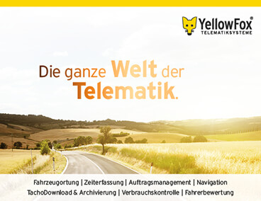 Die YellowFox GmbH wurde 2003 gegründet, wobei der Grundstein für die Entwicklung des Produktportfolios, bereits 1999 im Mutterunternehmen mobilplus GmbH gelegt wurde. Die YellowFox GmbH bietet als einer der technologisch führenden Anbieter für webbasierte Fahrzeugtelemetrie und -ortung in Europa, das perfekte Handwerkszeug für Controlling, Steuerung und Management von Fuhrparks. Ein modulares, sowie skalierbares Lösungsportfolio lässt sich auf unterschiedlichste Bedürfnisse anpassen und erweitern. Mit dem Produkt TachoComplete hat YellowFox einzigartige vollständig in Telematik integrierte, automatische Tacho- und Fahrzeugdaten-Archivierung im Angebot. Der Einsatz der Produkte ist orts-, zeit- und branchenunabhängig. Der nationale Vertrieb der Telemetriesysteme erfolgt durch Fachhandelspartner. Ein Händlernetz von mehr als 140 Partnern sorgt für regionale Nähe sowie kompetente Betreuung und Montage vor Ort. International ist YellowFox in der Schweiz, Österreich und den Benelux-Staaten aufgestellt. Weitere Kontakte bestehen zu Systempartnern in Frankreich, Italien und Kroatien. Die typische Kundenstruktur besteht aus Speditionen, Logistikern, Handwerk, aber auch aus Betrieben im Dienstleistungs-, Bau- und Taxigewerbe, dem Handel, der Bahn und der Binnenschifffahrt.