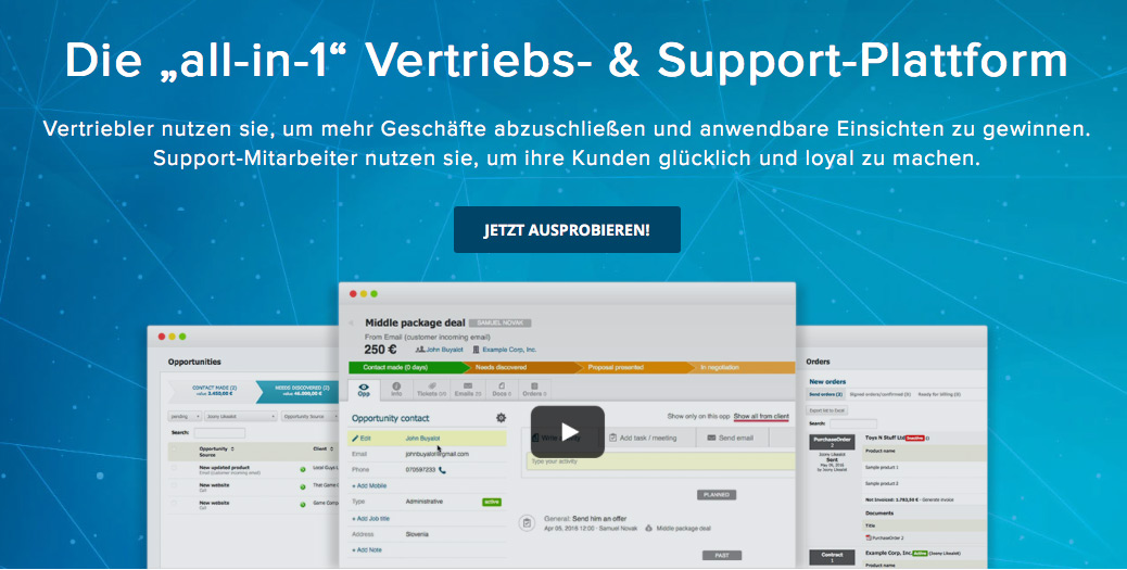 (IINews) - Düsseldorf, Ljubljana, den 23.06.2016 - CRM-Systeme für den Vertrieb müssen andere Anforderungen erfüllen als klassische Kundenservice-CRMs: Zum einen müssen sie die Vertriebler, die mit ihnen arbeiten sollen, durch einen genau definierten, möglichst schlanken Verkaufsprozess (Vertriebstrichter) zum Abschluss führen, zum anderen müssen sie die Vertriebler dabei weitest möglich von manuellen Informationseingaben entlasten. Nur wenn ein CRM-System diese beiden Anforderungen erfüllt, ist der Verkaufserfolg vorprogrammiert: Erst dann können Verkäufer ihre Leads entlang eines definierten Prozesses zu Kunden machen, ohne ständig von Dateneingaben abgelenkt und aus ihrem "Flow" geworfen zu werden.