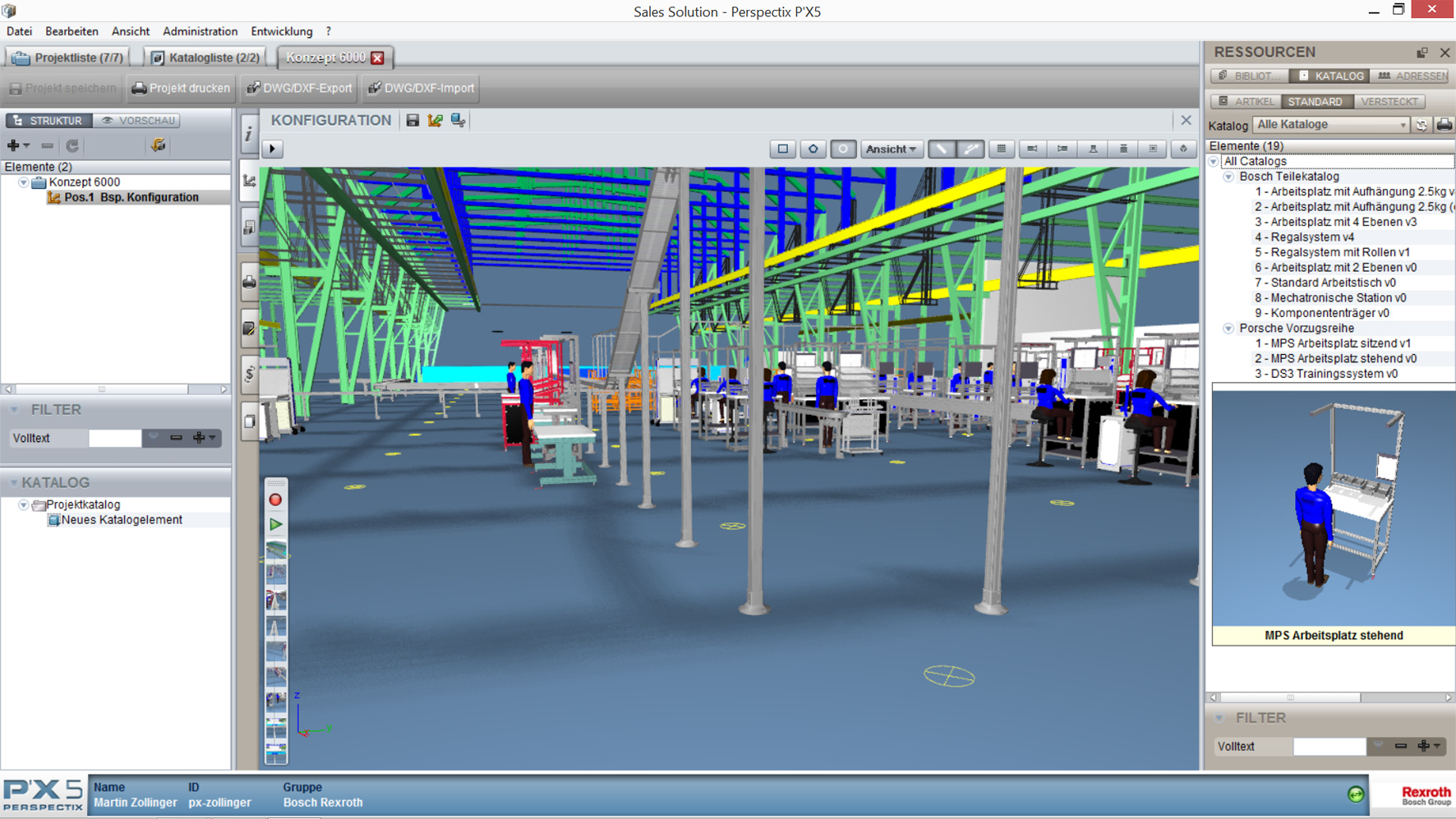 Mit der Software-Suite P´X5 von der Perspectix erfüllen Anbieter in allen Branchen der Industrie die individuellen Anforderungen ihrer Kunden. Anhand schlanker 3D-Modelle konfigurieren Vertriebsingenieure Komponenten aus modularen Produktsystemen und stellen komplexe Anlagen fehlerfrei am Laptop zusammen. Mitgeführte Artikellisten und Preisinformationen, bemaßte Aufstellskizzen und Anlagenzeichnungen stellen nur einige Optionen dar. Animierte, dreidimensionale Anlagenmodelle überzeugen in Präsentationen von der Lösung der gestellten Aufgabe. Dazu werden Produktmodelle aus CAD-Systemen als leichtgewichtige Visualisierungsgeometrien verwendet. Schnittstellen zu PDM-Systemen sorgen dafür, dass alle Konfigurationsdaten mitverwaltet und den Änderungsprozessen unterworfen werden. Stammdaten und Preisinformationen werden via XML mit CRM- oder ERP-Lösungen geteilt. Dazu erleichtert P´X5 dem Produktmarketing die Aufgabe, Artikel, Baugruppen und Module aus vertrieblicher Sicht zu definieren und ein Angebotsportfolio zu erstellen.