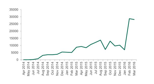 -Weltweiter Anstieg: Die Anzahl der von mobiler Ransomware attackierten Nutzer stieg fast um das Vierfache - von insgesamt 35.413 attackierten Nutzern im Zeitraum 2014/2015 auf 136.532 Nutzer im Zeitraum 2015/2016. Den größten Anstieg verzeichnete Kaspersky Lab im ersten Quartal 2016.