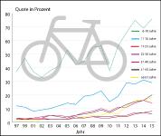 Über alle Altersgruppen hinweg hat sich die Tragequote von Fahrradhelmen im Vergleich zum Vorjahr von 17 Prozent auf 18 Prozent erhöht. Besonders gestiegen ist der Anteil bei der sechs- bis zehn-Jährigen. Dort stieg die Quote von 69 auf 76 Prozent. Somit wurde in dieser Gruppe der Höchststand aus 2013 von 75 Prozent übertroffen. Bei den elf- bis 16-Jährigen sank die Helmtragequote allerdings von 31 auf 29 Prozent.