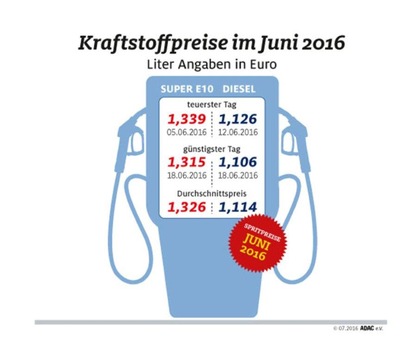Monatsmittel 1,326 Euro. Gegenüber Mai verteuerte sich Benzin damit