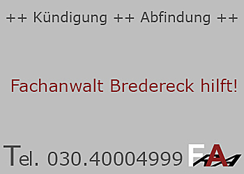 Wir vertreten Arbeitnehmer deutschlandweit bei Kündigungsschutzklagen gegen ihren Arbeitgeber und erstreiten Abfindungen. Rufen Sie Fachanwalt für Arbeitsrecht Alexander Bredereck an und besprechen Sie zunächst telefonisch und unverbindlich die Erfolgsaussichten einer Kündigungsschutzklage. Hierbei können Sie auch die Kosten bzw. das Kostenrisiko im Verhältnis zu der zu erwartenden Abfindung besprechen.