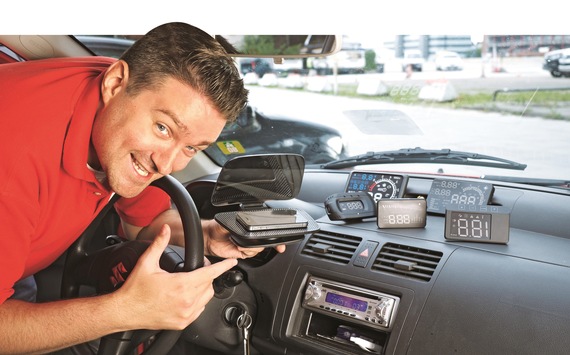 GPS-Geschwindigkeitsanzeige und einem Tempowarner ausgestattet und so