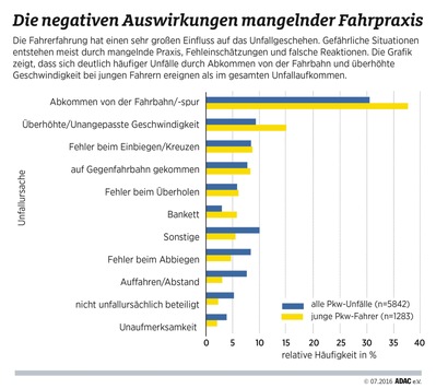 Unfallursachen mangelnde Fahrpraxis, unangepasste Geschwindigkeit und