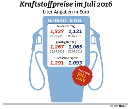 Die Kraftstoffpreise sind im Juli 2016 gegenüber dem Vormonat