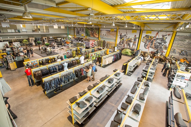 Der großzügig gestaltete, im "Industrial Design" konzipierte Touratech-Shop bietet auf rund 1000 Quadratmetern Fläche die ganze Welt des Motorradreisens. Daran angeschlossen ist das Bistro "Travel Inn", das ebenfalls mit umzieht und in neuem Ambiente sowie deutlich größer ab 15. August wieder geöffnet ist.