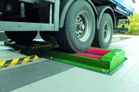 Für alle einachsigen Nutzfahrzeuge, die die geforderten 1,7 bar nicht erreichen, kommt man leider nicht umhin, zusätzlich eine entsprechende Vorrichtung beim Prüfvorgang zu verwenden, die Last simuliert. Dafür bietet MAHA eine optionale Bodenkonsole an, mit deren Hilfe das Fahrzeug beim Prüfvorgang vom Grubenboden aus fixiert wird. Zugleich wird der Rollensatz bei der Bremsprüfung angehoben, wodurch letztlich die benötigte Last simuliert wird.