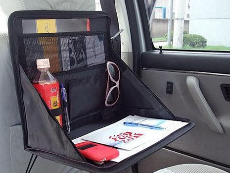 (IINews) - Sie sitzen im Fond eines Fahrzeugs und haben geschäftlich noch eine Menge zu erledigen? Dann haben wir die clevere und innovative Lösung für Sie. Die platzsparende Auto-Rücksitz-Tasche.