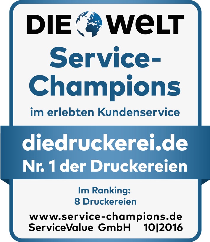"Service-Champion 2016: diedruckerei.de erneut Branchenprimus (FOTO)
