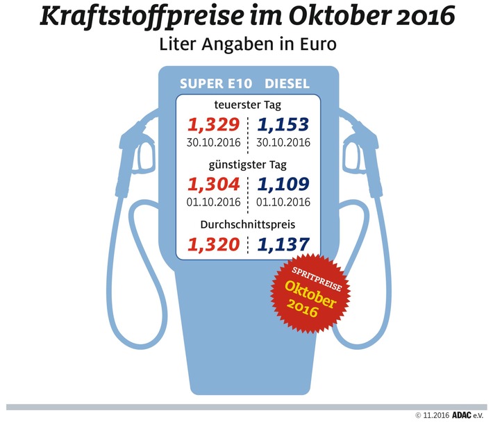 mehr als im September. Der Liter Super E10 verteuerte sich gegenüber
