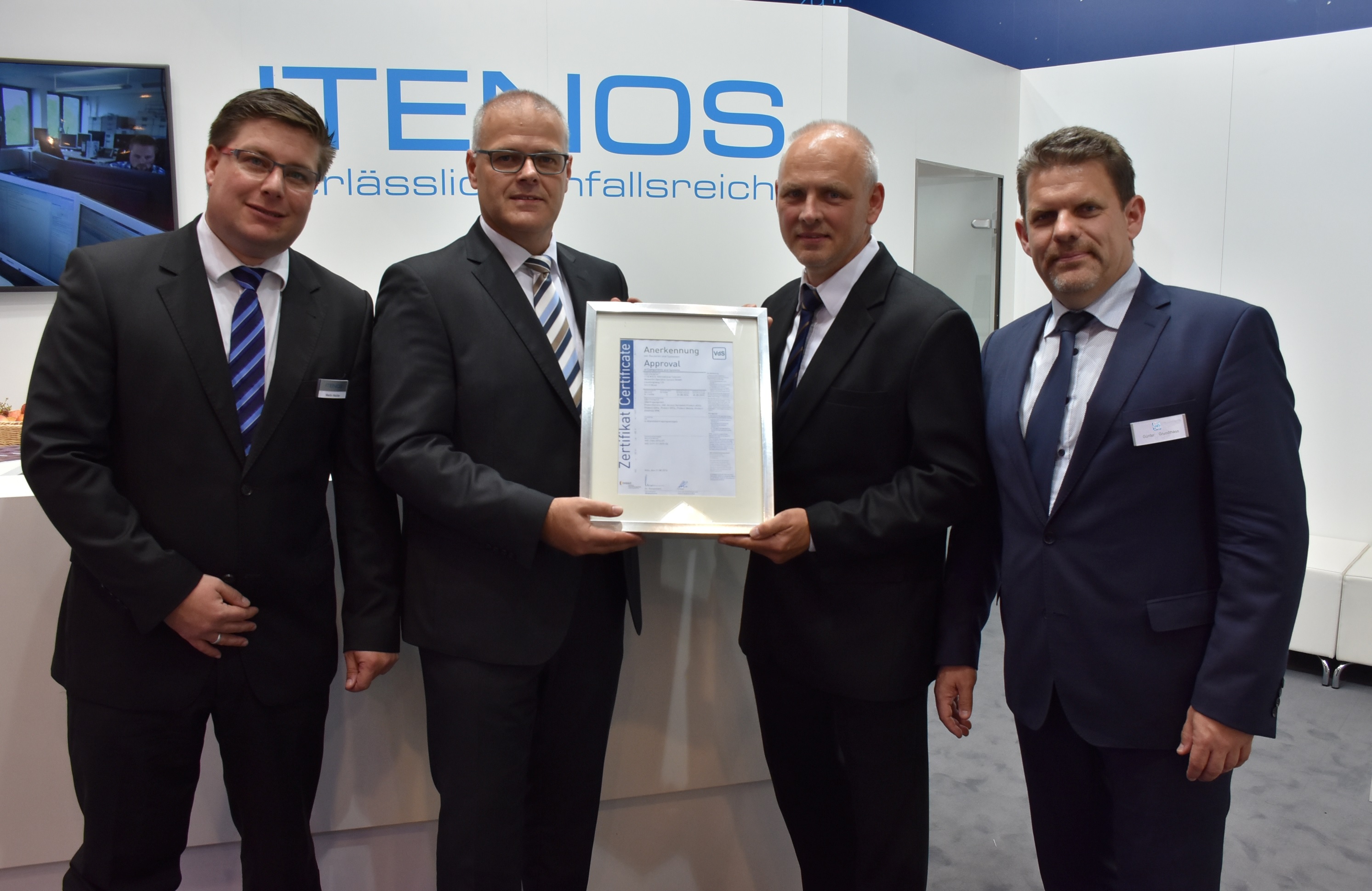 Der Höhepunkt des Projektes "Messeauftritt security essen" war für ITENOS zweifellos die Entgegennahme des VdS-Zertifikats VdS 4271-S1 für das ProtectService-Übertragungsnetz. Schon vorher hatte ITENOS das VdS-Alarmübertragungszertifikat der Qualitätsklasse "C" innegehabt. Das neue zusätzliche Zertifikat bescheinigt dem Unternehmen nun die Erfüllung höchster Qualitätsansprüche im Zusammenhang mit der IP-Übertragung für Alarmmeldeanlagen. "Das in einem wachsenden Sicherheitsmarkt die Qualitätsanforderungen steigen, ist ganz selbstverständlich", so Wolfgang Heck, Leiter Business Unit Netze bei ITENOS. "Wir reagieren darauf mit höchsten Standards und mit Prozessen, die VdS- und ISO-zertifiziert sind. Somit sind wir für die Zukunft hervorragend aufgestellt."