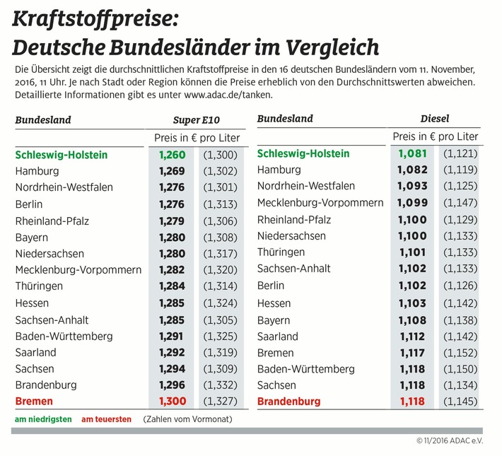 Tanken: Regionale Preisunterschiede von bis zu vier Cent / Kraftstoffe in Schleswig-Holstein am günstigsten / Bremen, Brandenburg, Baden-Württemberg und Sachsen am teuersten (FOTO)