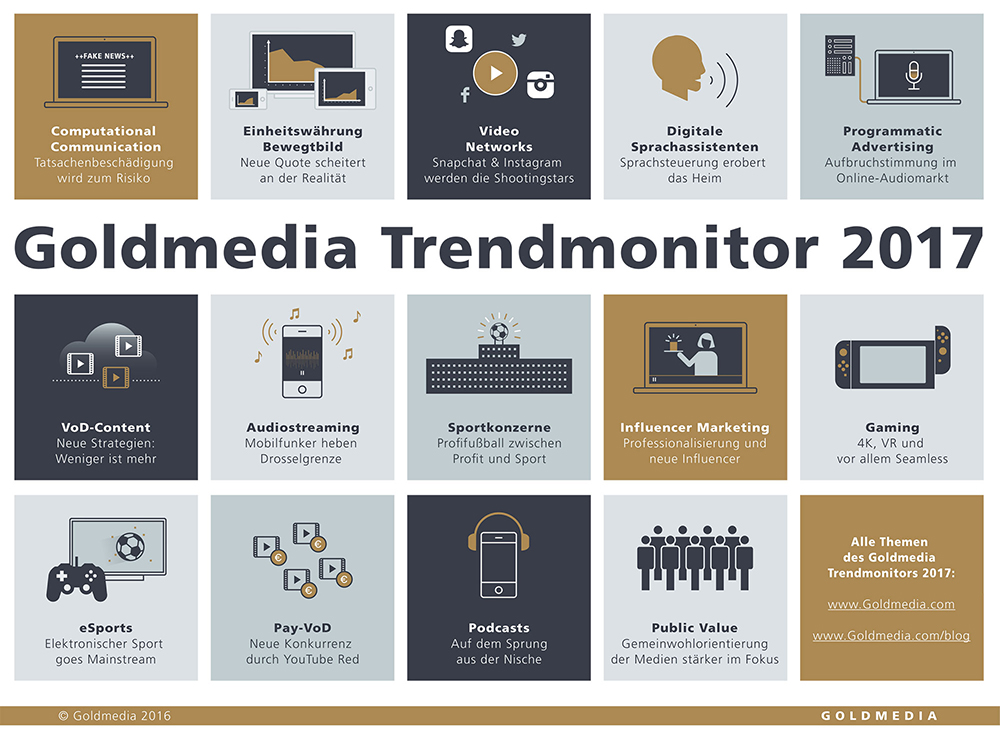 Trendmonitor 2017 zum Download sowie weitere Informationen unter: http://www.goldmedia.com/aktuelles/trendmonitor-2017/