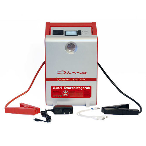 Dieses 3in1 Starthilfegerät ist mit seinen 1.200A Maximalkraft geeignet für 12 & 24 Volt Fahrzeugbatteriesysteme.