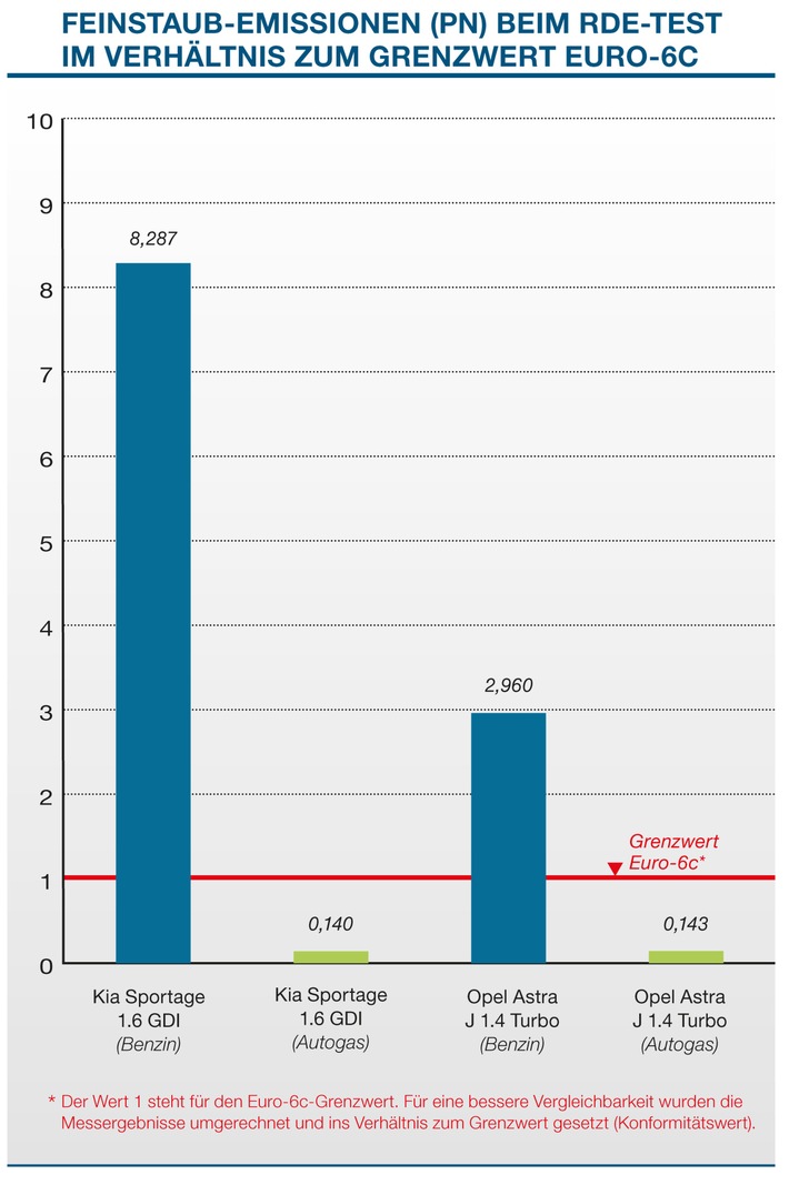Resultat: Im Autogas-Betrieb unterschritten die Pkw beide Grenzwerte