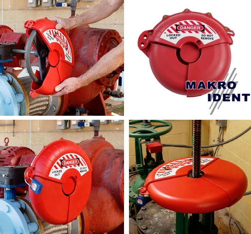 MAKRO IDENT - bekannter Brady Premium-Distributor für Europa bekannt - verfügt über das komplette Sortiment an Brady Lockout-Tagout Verriegelungen und Sicherheitskennzeichnungen. Darunter auch die Standard Durchgangsventil-Verriegelungen für Handräder in der Größe von 25 bis 330 mm Durchmesser.