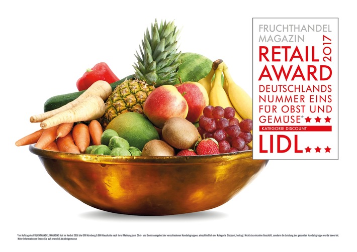 Bestes Obst und Gemüse: Verbraucher küren Lidl zum Sieger / Lidl gewinnt zum wiederholten Mal den 1. Platz beim "Fruchthandel Magazin Retail Award" (FOTO)