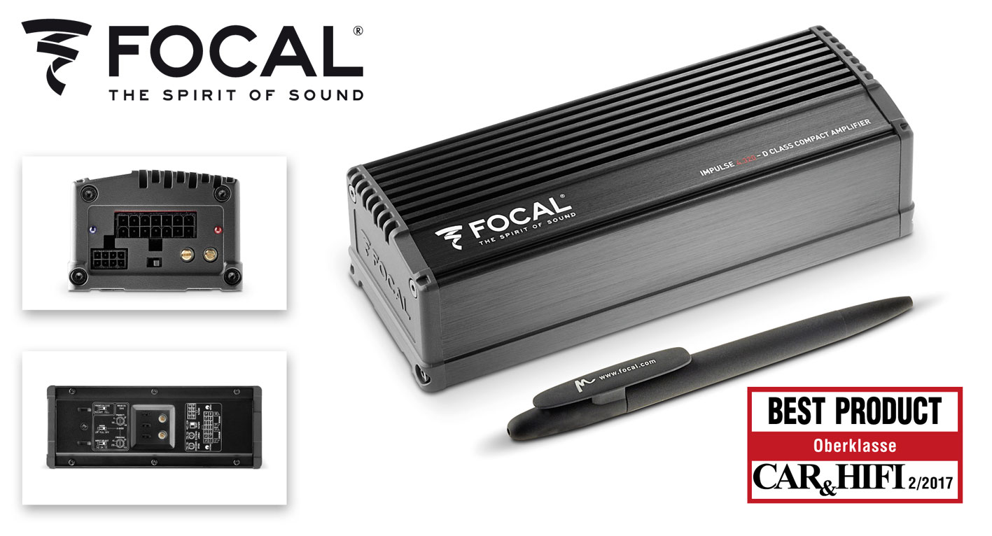 (IINews) - Wer seinem Autoradio unkompliziert einen Leistungsschub verpassen will, findet bei der französischen Traditionsmarke Focal die winzige, wenig mehr als ein Kugelschreiber messende 4-Kanal Endstufe Impulse 4.320. Doch kann der nur 17,5 x 6,65 x 4,7 cm große Digital-Verstärker wirklich größeren Amps das Wasser reichen? Die Zeitschrift Car & HiFi beantwortet diese Frage in Heft 02/2017 eindeutig mit Ja und prämiert die Focal Impulse 4.320 als "Best Product".