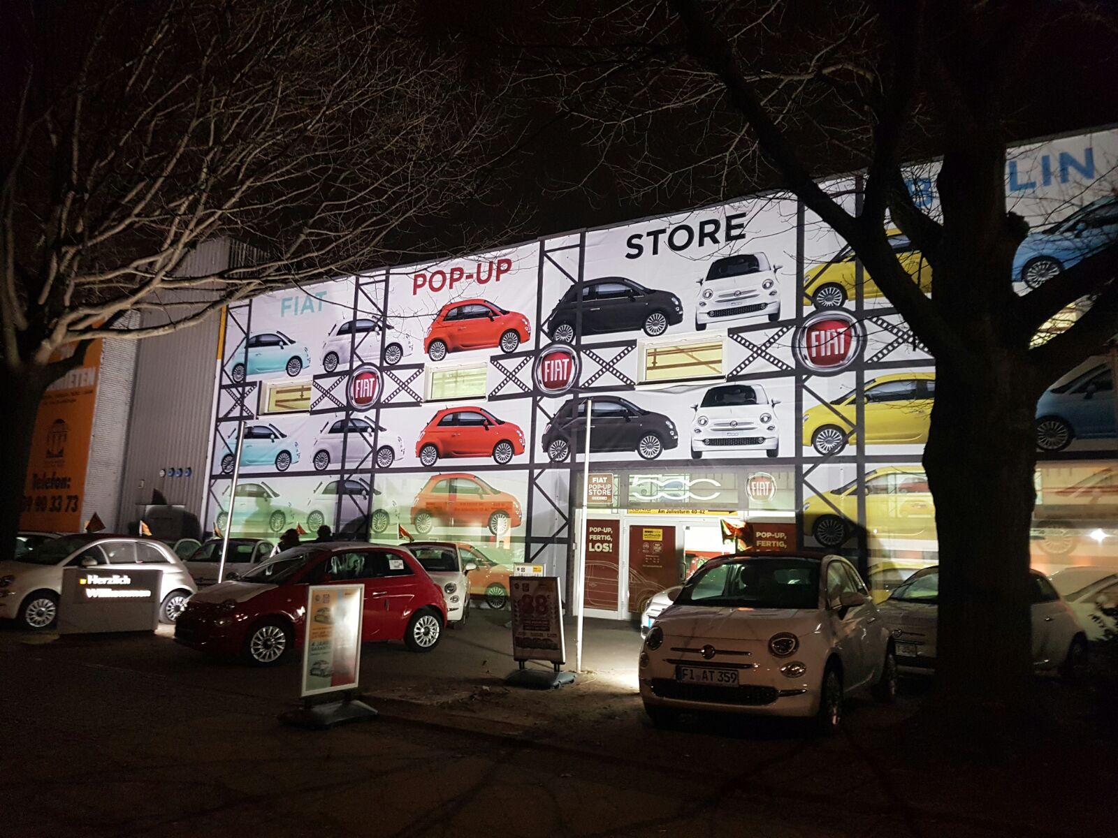 Mit dem Slogan "Pop up, fertig, los" bewirbt der Berliner Fiat-König die dicht gestapelten Paletten, auf denen viele bunte Autos thronen. Ein Besuch in diesem außergewöhnlichen Ambiente lohnt sich auf alle Fälle. Noch bis zum 31. März 2017 kann jeder Interessierte das Pop-up Konzept selbst erleben und Teil eines aufregenden Happenings werden, oder einen neuen Fiat 500 zu Pop-up Preisen erwerben.
