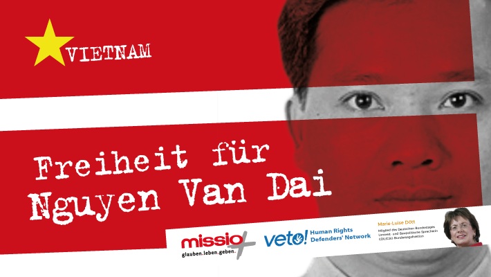 missio initiierte ebenfalls eine Petition für Nguyen Van Dai. "Der mutige Jurist hat Christen und Angehörige anderer Minderheiten vor Gericht in Vietnam verteidigt und für die gefährdeten Menschenrechte in seiner Heimat gekämpft, jetzt braucht er selbst Unterstützung", sagte missio-Präsident Prälat Klaus Krämer.