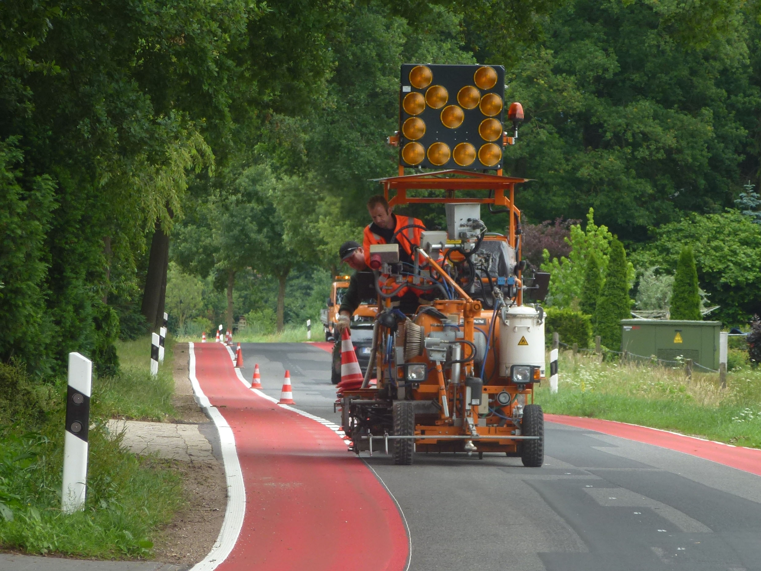 Forschungsprojekt des Verkehrsministeriums - Markierung von Fahrradschutzstreifen im Landkreis Grafschaft Bentheim mit Triflex