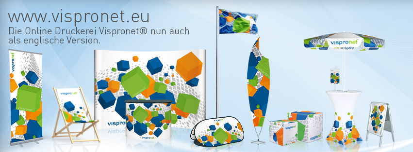 (IINews) - Vispronet® will in Europa hoch hinaus! Mit diesem ehrgeizigen Ziel vor Augen wird der Online-Shop seit März auch in englischer Sprache angeboten. Damit soll besonders im Hauptzielmarkt Großbritannien weiteres Kunden-Potential erschlossen, aber auch Kunden in anderen europäischen Ländern für das breite Produktspektrum von Vispronet® begeistert werden.Vispronet® steht für eine riesige Produktpalette rund um die Bereiche Außen- und Innenwerbung, Kommunikation am Point of Sale, Messe und Ladenbau sowie Wohnen und Livestyle.