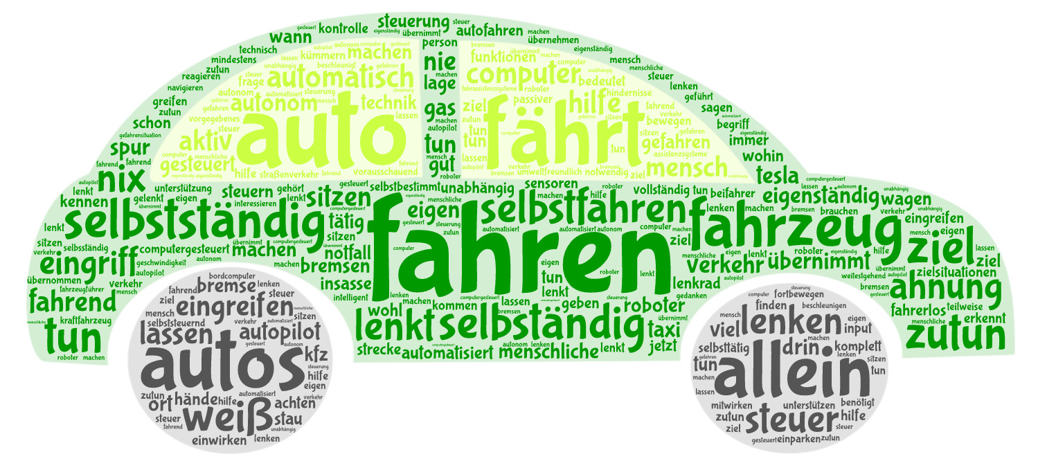 Die meisten Befragten haben bereits ein klares Verständnis, was mit dem autonomen Fahren gemeint ist: ein Fahrzeug, das selbständig fährt, lenkt und den Fahrgast alleine per Computersteuerung zum Ziel bringt. Ein digitales Automobil.