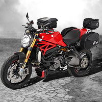 Für die Mitnahme von kleinem Gepäck hat die Firma einen C-Bow Halter in schwarz für 175,00 € entwickelt. Lieferbar wird dieser Halter in KW 37 sein. Passend für diesen Halter gibt es eine Auswahl an Softgepäck und das Orbit Sidecase (329,50 € pro Satz). Damit noch etwas mehr Gepäck mit gehen kann wurde auch ein Minirack, ebenfalls in Schwarz, entwickelt. Dieses wird für 189,50 € voraussichtlich in KW 34 zu erwerben sein. Für dieses Rack bietet der Hersteller seine Street Hecktasche inklusive Lock it Hecktaschenhalter an, welches für 169,50 € pro Stück gekauft werden kann. Um auch bei dem alltäglichen Ausfahren nicht völlig gepäcklos unterwegs sein zu müssen ist ein Lock it Tankring bereits jetzt schon für 44,90 € erhältlich. Tankrucksäcke gibt es in verschiedenen Größen und Designs ebenfalls direkt von Hepco & Becker. Für das Monster gibt die Firma als ideal passend seinen Tankrucksack Street Tourer M an. Der kostet 159,50 € pro Stück und hat Organizerfächer, Karten- / Navitasche im Deckel integriert. Außerdem hat er einen Rundum-Reißverschluss zur Volumenvergrößerung, ein abschließbarer 2-Wege Reißverschluss, eine integrierte Regenhaube, Kabeldurchführung, Tragegriff, Gepäckhaken und Tragegurt. Er kann 8-13 Liter fassen und erlaubt eine Zuladung von bis zu 3 kg. Für einen besseren Stand auf weniger festem Untergrund bietet die Firma auch eine Seitenständerplatte, auch bereits lieferbar, für 47,90 € in Schwarz/Silber an.