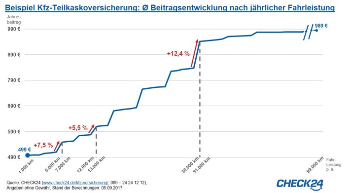 1.000 Kilometer zusätzliche Fahrleistung lassen den Jahresbeitrag