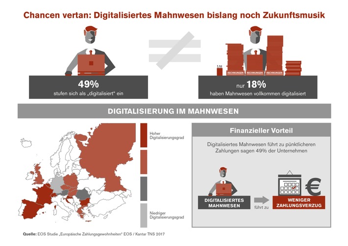 EOS Studie "Europäische Zahlungsgewohnheiten" 2017 / Digitales Mahnwesen in Europa: Deutschland Schlusslicht (FOTO)