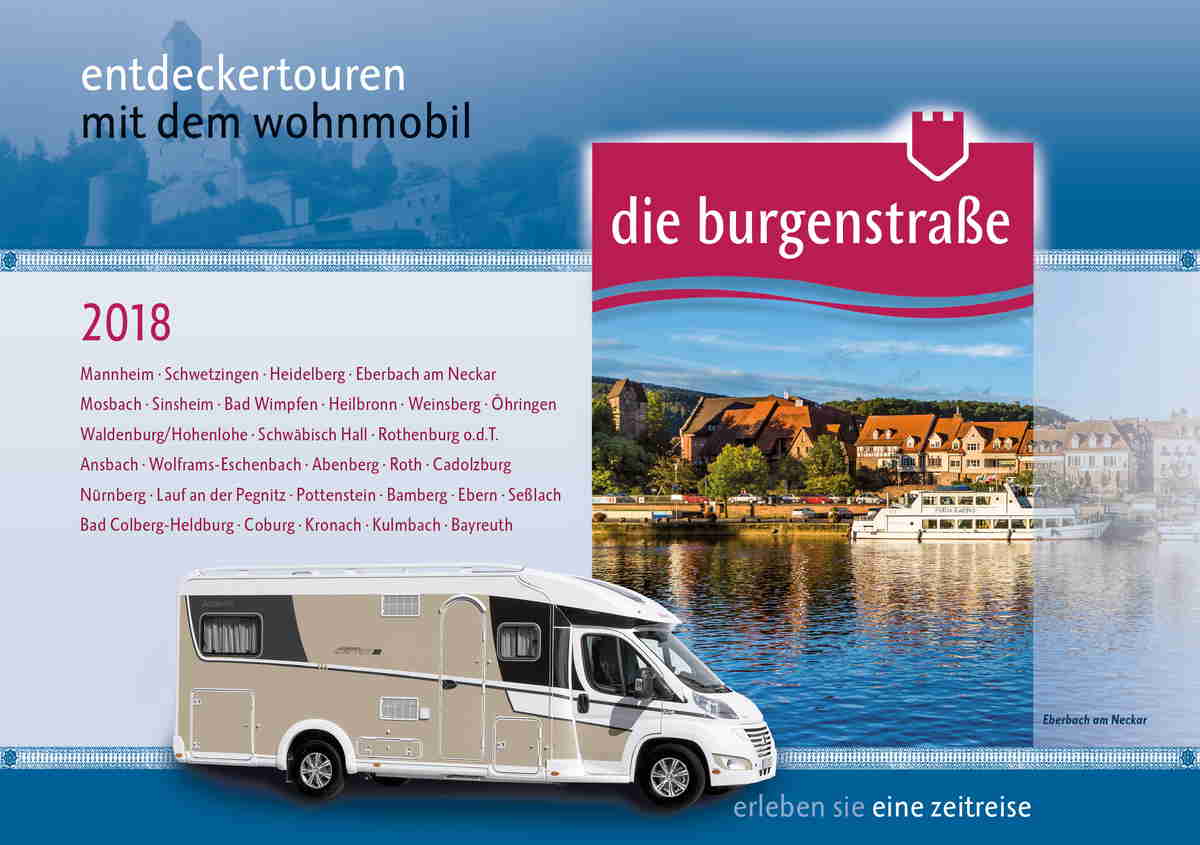 (IINews) - Die Neuauflage der Broschüre "Entdeckertouren" beschreibt fünf Touren mit dem Wohnmobil entlang der Burgenstraße quer durch Süddeutschland. Sie kann kostenlos bei der Geschäftsstelle in Heilbronn bestellt werden (E-Mail info(at)burgenstrasse.de, Telefon 07131/973501-0). Vorbei an über 70 Burgen und Schlössern werden die Etappen zwischen 83 und 232 Kilometer Länge vorgestellt, die von Mannheim durch das Neckartal ins Hohenloher Land sowie über Rothenburg ob der Tauber bis nach Nürnberg, Bamberg und Bayreuth führen. Neben Infos zu Stellplätzen gibt es Tipps zu Sehenswürdigkeiten und Kulinarik der Region. Veranstaltungstipps und Ausflugsziele wie Höhlen, Kletterwald oder Mittelaltermärkte machen die Broschüre zu einem wichtigen Reisebegleiter. Weiteres Plus: Hundebesitzer finden Empfehlungen für schöne Spazierwege direkt ins Grüne von den Stellplätzen aus.