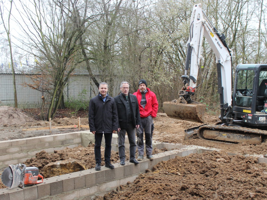 Das Foto zeigt von links Alexander Appel (REFA-Hessen), Helmhard Neuenhagen (Bundesbildungszentrum des Zimmerer- und Ausbaugewerbes) und einen Vertreter des ausführenden Bauunternehmens bei der Baustellenbesichtigung zum Erweiterungsbau des REFA-Seminarzentrums Kassel.
