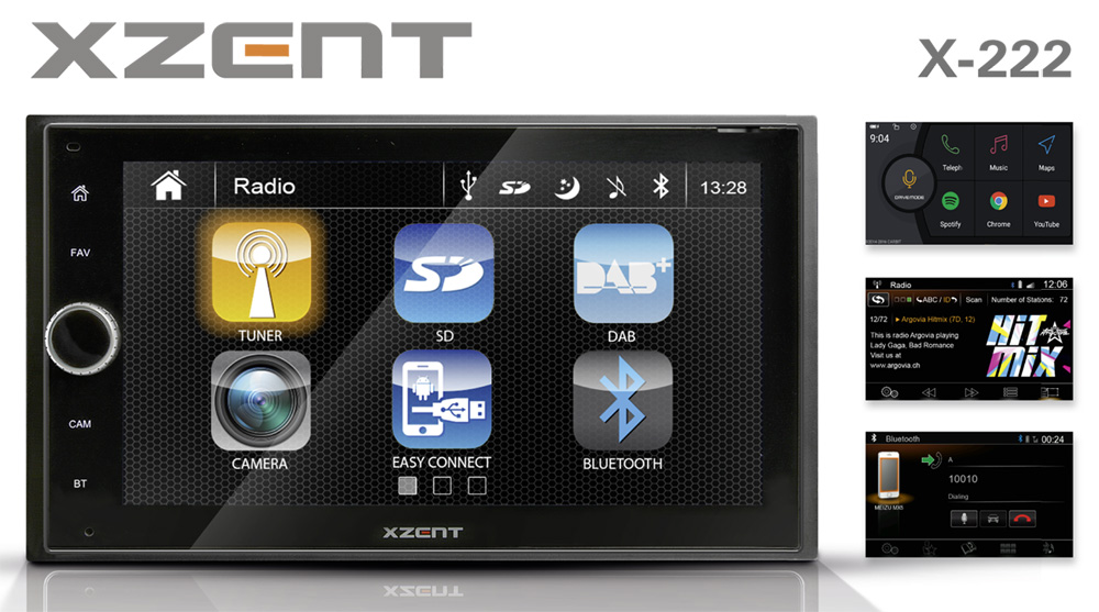Alle Unterhaltungsmöglichkeiten in einem Gerät - mit dem X-222 präsentiert XZENT einen 2-DIN DAB+ Moniceiver, mit dem sich Multimedia im Auto kostengünstig nachrüsten lässt.