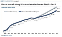Fazit: Discountbetriebsformen entwickeln sich zusammengenommen weiterhin positiv und liegen in jedem Fall oberhalb der Handelsentwicklung. Dabei nähern sich einzelne Formen langsam ihrer Sättigungsgrenze. Das gilt insbesondere für Hard Discounter des Lebensmittelmarktes.
