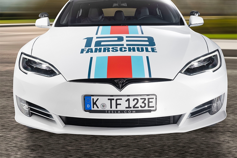 Bei der 123FAHRSCHULE können Schüler Erfahrung im Tesla Model S sammeln