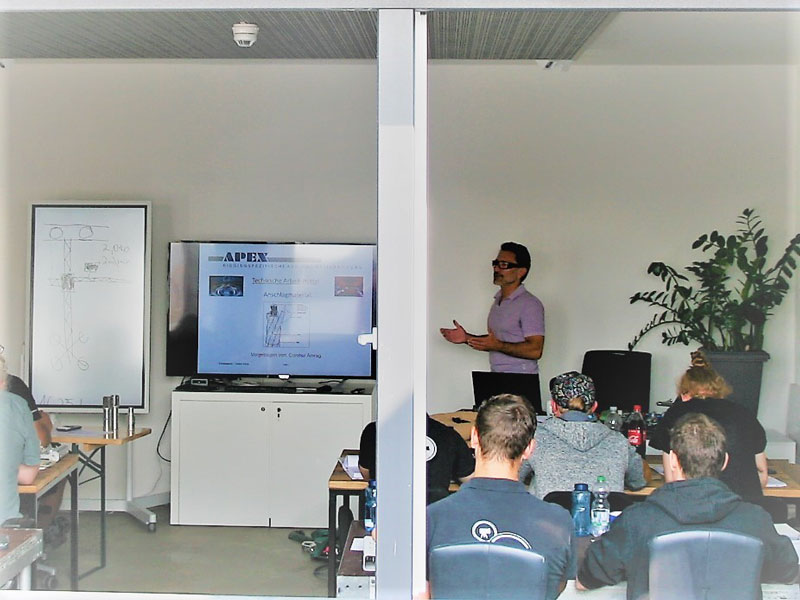 Veranstaltungsdienstleister weitere 14 Mitarbeiter für die Anforderungen fit gemacht, und sie bei der etablierten Apex Riggingschule mit Zertifikat als Sachkundiger für Anschlagmittel & Traversensysteme qualifizieren lassen.
