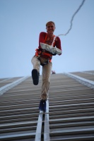 House Running – der abgefahrene Freizeitspaß – lockt damit schon im vierten Jahr alle Mutigen, Neugierigen und Freunde der etwas anderen Wochenendgestaltung zum vertikalen Spaziergang nach Berlin. Die Teilnehmer laufen dabei mit einem Seil gesichert entlang der Außenfassade des andel’s Hotel Berlin 60 Meter senkrecht in die Tiefe – hoher Adrenalin-Pegel und Glücksgefühle garantiert. Ein Erlebnis sowohl für House Runner als auch für die Zuschauer.