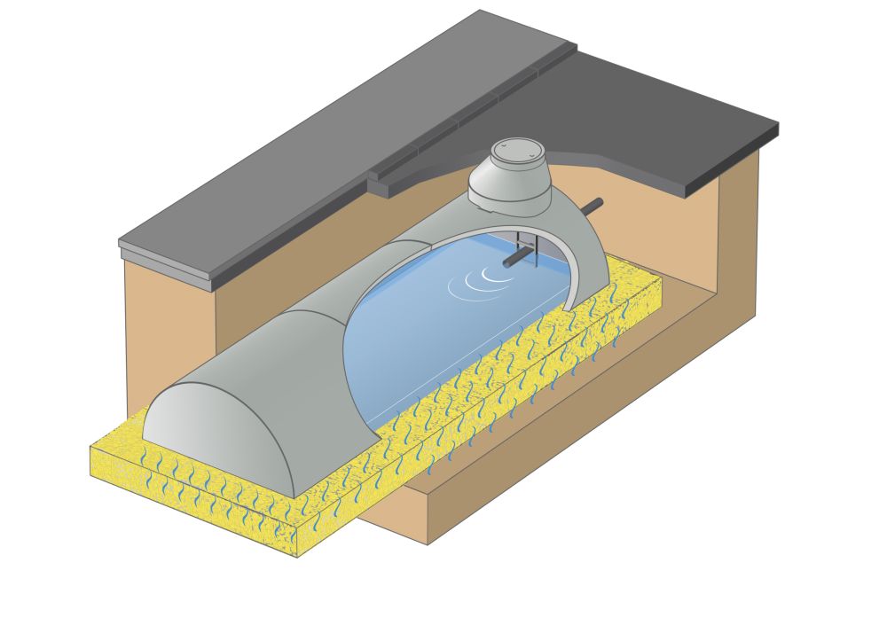 Hohlkörperrigolen haben gegenüber den gebräuchlichen Füllkörperrigolen klare Vorteile, besonders wenn sie aus Stahlbeton bestehen: Sie sind statisch bestimmt, standsicher, bis SLW 60 belastbar und kommen auch bei großen Hohlräumen ohne innere Aussteifungen aus. Sickertunnel CaviLine lassen sich linienförmig oder im Parallelbetrieb flächenförmig anordnen und sind als Gesamtanlage beliebig erweiterbar. Das erforderliche Rückhaltevolumen wird durch ihre Bauweise kleiner als bei kubischen Formen. Durch die Innenhöhe von 1,25 m ist CaviLine nach der Definition der DGUV zugänglich, Wartung und Reinigung können so mit einfachen Werkzeugen erfolgen. Ein Geotextilmantel ist nur auf den Stößen erforderlich, so dass auch Einbau und Montage mit geringem Aufwand erfolgen können.
