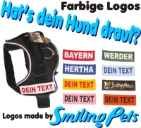 Unser Angebot erstreckt sich über 8 Hintergrundfarben inklusive Wunschtext in 15 möglichen Farbvariationen. Wir produzieren in 3 verschiedenen Größen für alle handelsüblichen Geschirre mit Logofeld, wie z.B. Julius K9, Doggy-Talk, X-Dog oder Xtreme. Auch für Welpen- und Kleinstgeschirre machen wir Ihre individuellen Wunschlogos möglich.